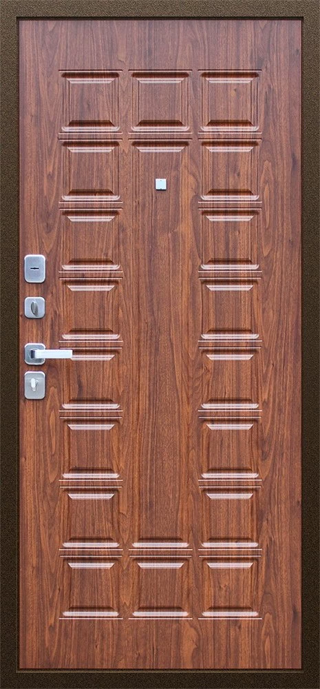 Надежная входная Дверь Спартак Орех темный премиум класса по цене 35 003 руб. Большая толщина стали защитит от проникновения в ваш дом, квартиру или коттедж. Используется очень качественная фурнитура: замки, цилиндры, ручки, защелки. Покрытие и отделка двери изготовлено под внимательным контролем производителя. Дверь имеет долгий срок службы и гарантию.